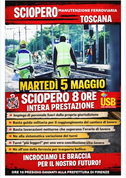 Sciopero manutenzione ferroviaria toscana: incrociamo le braccia per il nostro futuro